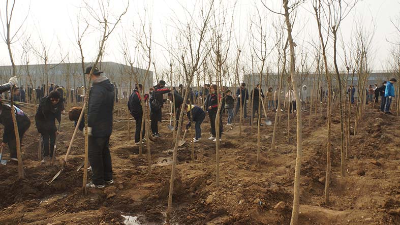 全體參加植樹活動的員工準時到位,在結束了短暫的人員組隊,劃分區(qū)域和領取工具等準備工作后,迅速的投入到植樹活動當中。各小組成員分工明確,積極踴躍。很多隊伍在組長的帶領下,領樹苗、放樹苗、填土、培土、澆水相互配合,干得熱火朝天。許多小組高效率高質量的完成本隊植樹任務后,迅速投入到其他隊伍中,互幫互助。在全體員工有組織有紀律的高效協(xié)作的前提下,在不到兩個半小時的時間內,共計完成1800棵樹苗的栽種工作,綠化面積達12000多平方米。此次植樹活動,進一步改善了控感廠區(qū)的生產(chǎn)環(huán)境,把原本空曠的廠區(qū)西南角的一片空地裝點得煥然一新!