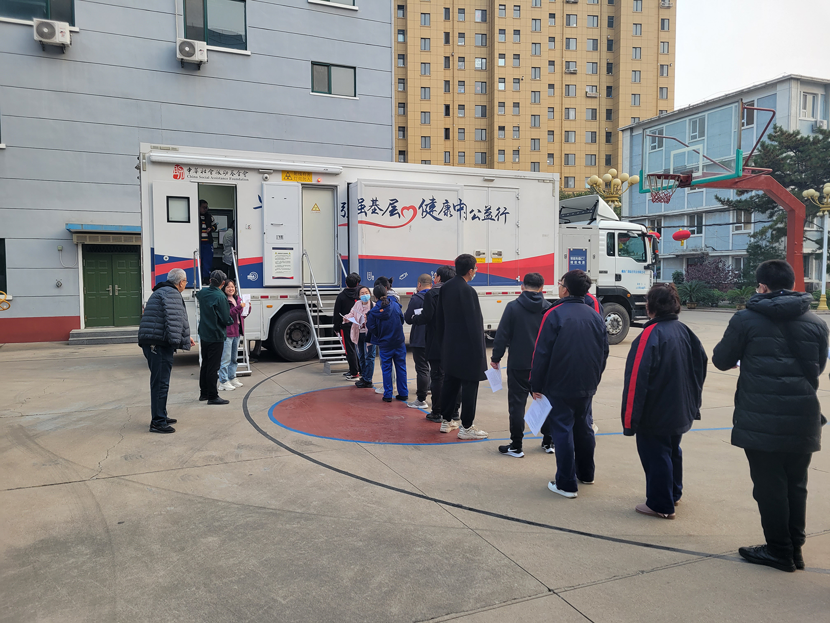 ▲在推進疫情防控常態(tài)化條件下“關(guān)心關(guān)愛”主題行動中,為表彰2020年度優(yōu)秀員工,有效保障員工身心健康,2021年11月30日下午,在公司院內(nèi)籃球場,九泰集團聯(lián)合中華社會救助基金會共同組織了“早篩早診強基層,健康中國公益行”公益活動,為九泰集團優(yōu)秀員工進行了肺CT檢查和胃癌高危因素篩查。此次篩查活動,以達到“早診斷、早預防、早治療”防病治病為目的,為員工健康構(gòu)筑起一道安全屏障,增強了員工的幸福感。