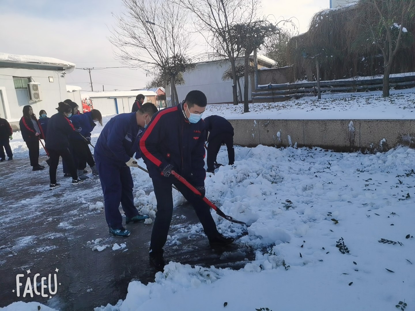 初雪是景,除雪是情。落雪無聲,洗盡鉛華。最美的不是下雪天,而是大家一起努力奮斗的身影。九泰人的辛勤汗水在寒冬揮灑,別樣的青春在雪中閃光。大家的歡聲笑語在白茫茫的雪地里漸漸消散,掃雪任務圓滿完成!